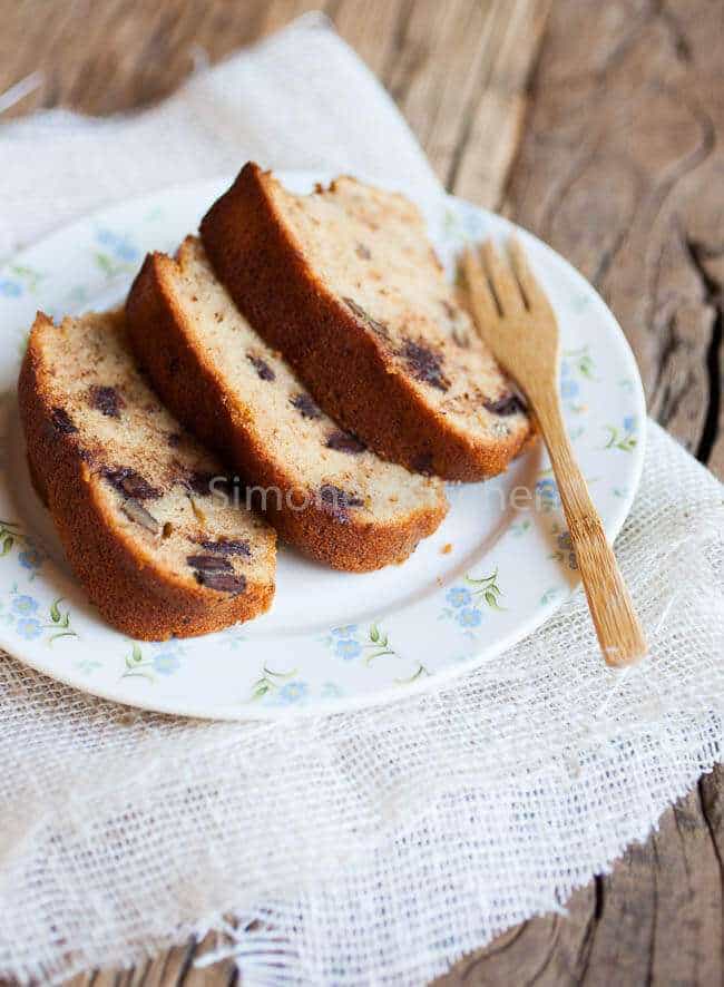 But then today I was left with 3 bananas that were clearly very overripe. Ready to be used right now. And while I love banana bread I had never actually made (a really good) one. Tom is not too big a fan of banana, so anything I bake with banana will either be given away or will have to be eaten by me alone. Not an option, so I normally don’t do a lot of banana baking. But these three babies were just yelling at me to have a go. So I started searching through my endless pile of cookbooks for that perfect recipe, featuring the ingredients I had on hand and… couldn’t find it. Well, I found plenty of banana bread or banana cake recipes but just not exactly what I was looking for.