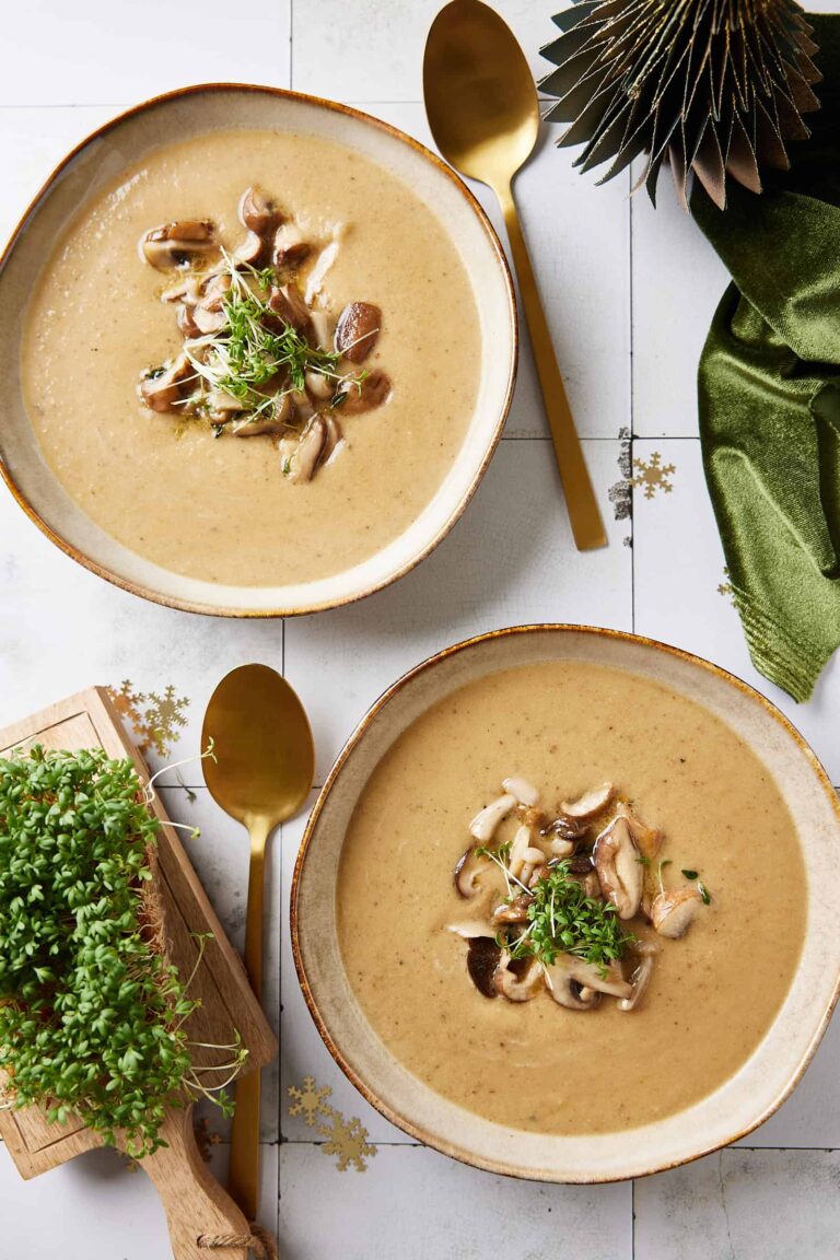 Delicious and easy to make celeriac soup with mushrooms, which is perfect for serving as a Christmas dinner party and is heartwarming and delicious.