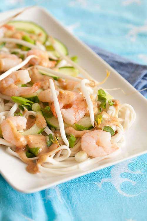 I do like to use the frozen cleaned shrimps for this. You can choose to either leave the shrimp tail on or off. It looks prettier with the tails on but it eats easier without. So your choice.