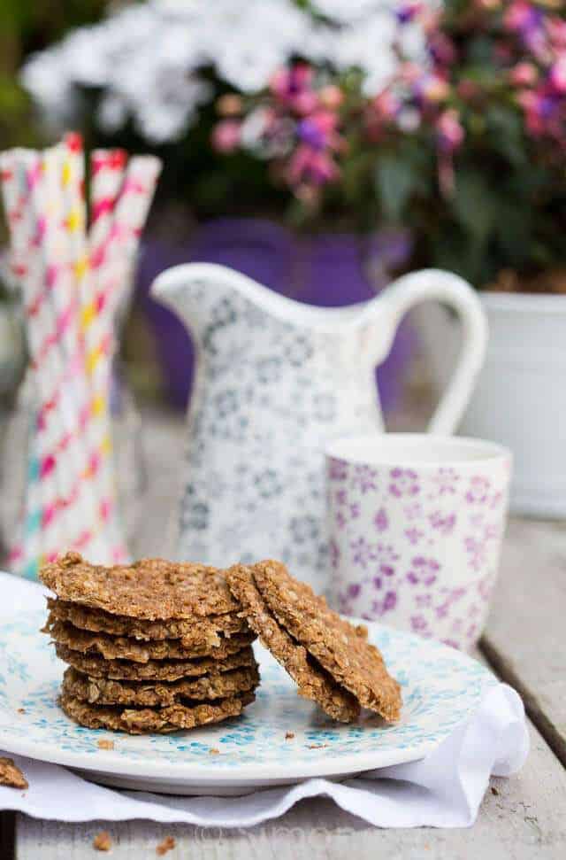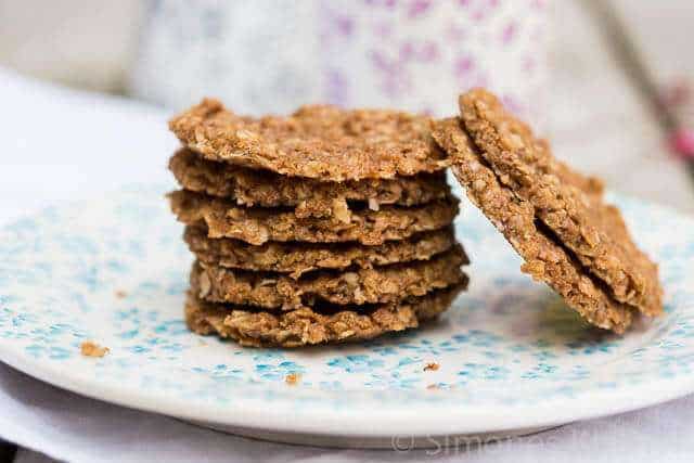 - Preheat the oven to 180 C (350 F). Place the oats, sugars, flours and ginger in a bowl and mix to combine. Add the butter, egg and orange and mix until well combined. Place rolled table spoonfuls of the mixture onto baking trays lined with non stick baking paper and flatten into 6 cm rounds, leaving room for the crisps to spread.