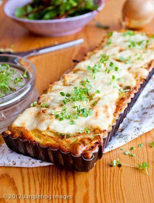 This onion cake is totally delicious and easy to make. It’s perfect for a lunch dish combined with a nice green salad or as a starter for dinner. Keep in mind that it’s not light on the stomach so make sure you adjust the rest of your dinner accordingly.