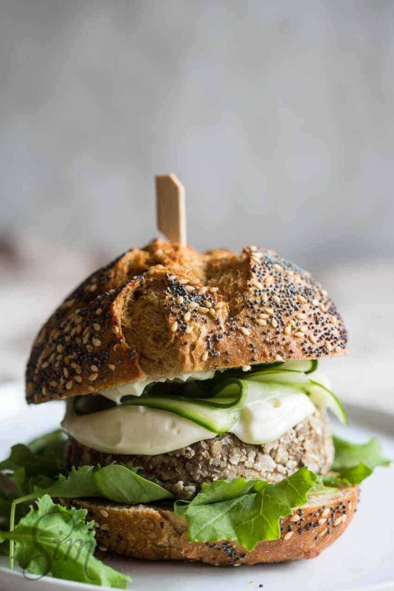 - Place the remaining buckwheat flakes on a flat plate and press the burgers carefully in it until covered on all sides. Heat the oil in a pan on medium heat. Bake each burger for about 3-4 minutes each side or until golden.