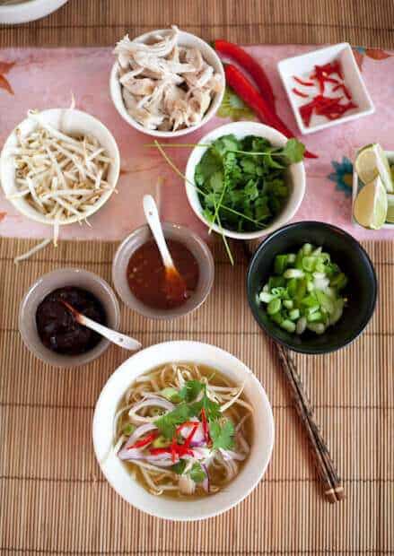 - Have the accompaniments spread out on the table. Each person can customize their own bowl with these ingredients.