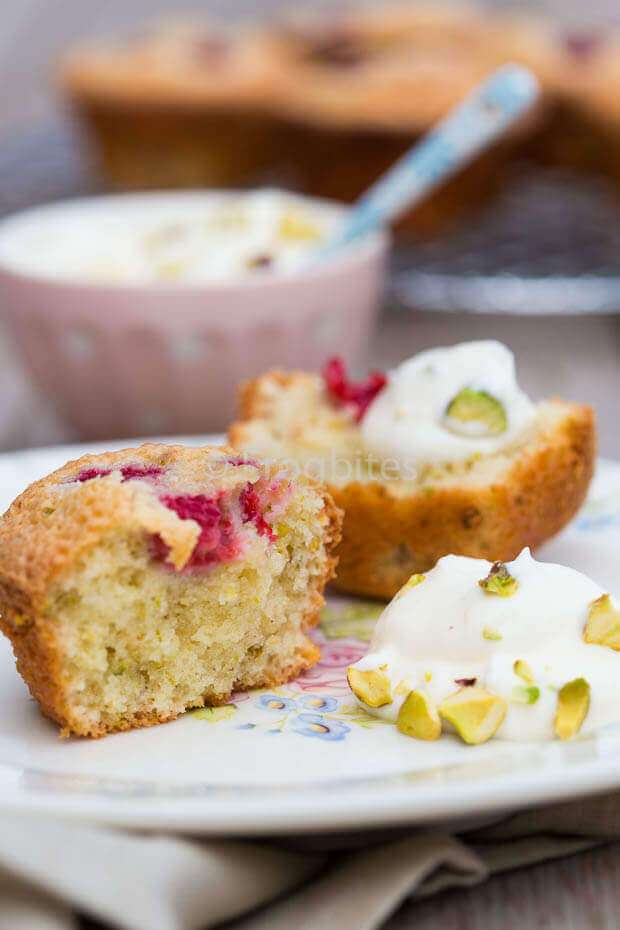 Pistachio and raspberry cakes