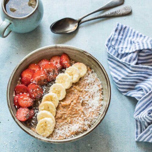 Divide over bowls and add the toppings of your choice.