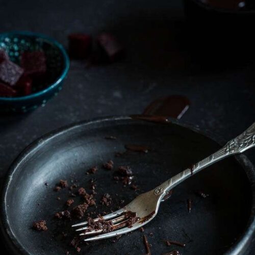 reheat the oven to 200C. Grease and line a 20cm cake tin (pref spring form). Sift 175 grams plain flour, 10 grams baking powder, 75 grams cocoa powder and 225 grams caster sugar into a bowl. Blend 3 eggs, 500 grams raw beetroot (roasted, peeled and chopped) and 200 ml sunflower oil in a blender, leave some small chunks of beetroot. Fold the beetroot mixture into the dry ingredients. Bake for 40 minutes. Meanwhile, put 250 ml cream into a saucepan and simmer gently until just before it reaches boiling point. Break 250 grams of dark chocolate into pieces and put into a mixing bowl. Pour the warmed cream onto the broken chocolate and mix gently until the two are blended together to make a silky chocolate icing. Remove the cake from the oven and leave to cool, once chilled generously cover the cake with the chocolate ganache.
