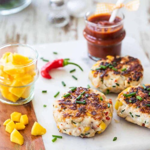 Want something else for breakfast? These delicious chicken burgers contain mango and can easily be transferred into a hearty breakfast. Or eat them for dinner!