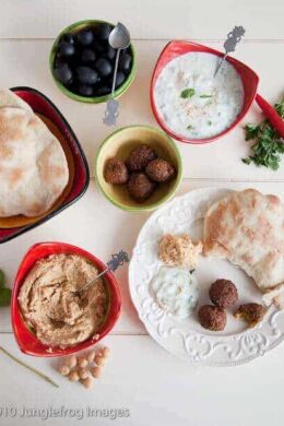 2. Place the drained, uncooked chickpeas and the onions in the bowl of a food processor fitted with a steel blade. Add the parsley, cilantro, salt, hot pepper, garlic, and cumin. Process until blended but not pureed. If you don’t have a food processor, then feel free to mash this up as smooth as possible by hand.