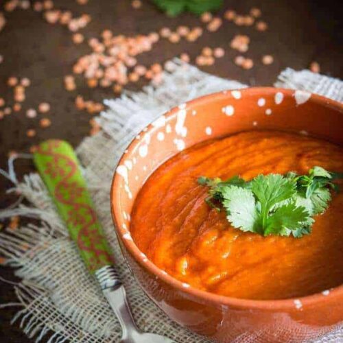 Puree with a stickblender and divide across bowls. Sprinkle the soup with the smoked paprika and some finely chopped cilantro.