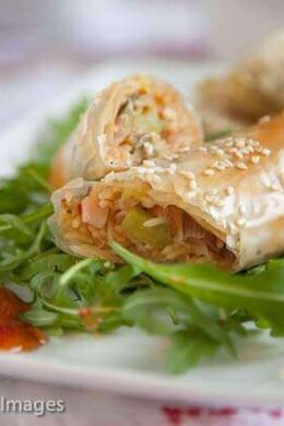 I always struggle with fillopastry as it dries so quickly once you take it out of the freezer and if you handle it took quickly it breaks easily, so make sure it if defrosted under a sheet of plastic to prevent it drying out and breaking while rolling them. Brush 4 sheets of filo with a little of the oil, then cover with the remaining sheets. Pile a quarter of your chicken mixture along the narrow edge of each sheet, fold over the edges, then roll up to give you 4 large spring rolls. These can now be frozen for up to 1 month; defrost thoroughly before cooking as below. Brush with the remaining oil, sprinkle with sesame seeds if using, then bake on a baking sheet, seam-side down, for 15 mins until golden and crisp. Serve with a green salad, and a good dollop of extra chilli sauce on the side.
