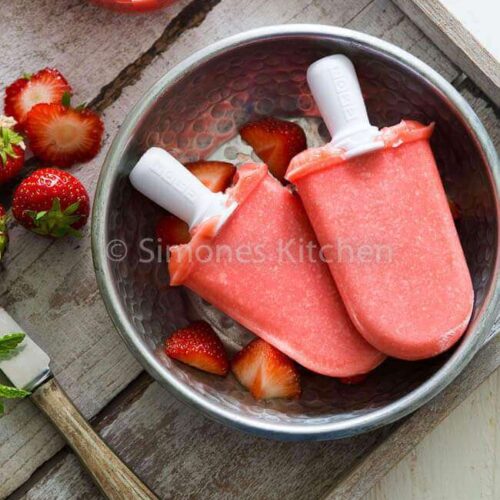 Puree the watermelon and the strawberries together in a blender. Put in a sieve and leave to drain. Help it along a bit too if needed. Discard the seeds and remainder once all liquid has been removed. Add the limejuice and the sugar syrup and taste if it is to your liking.Put in the fridge to cool.